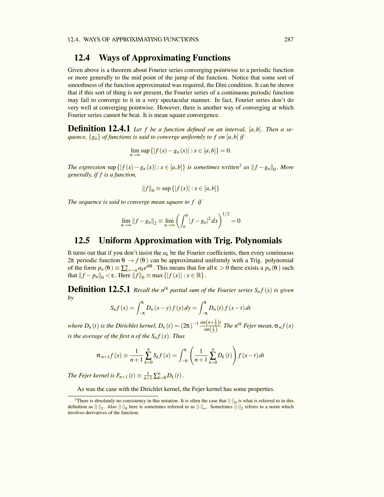 Theorem 12.5.3 Let f be a continuous and 2π periodic function. Then