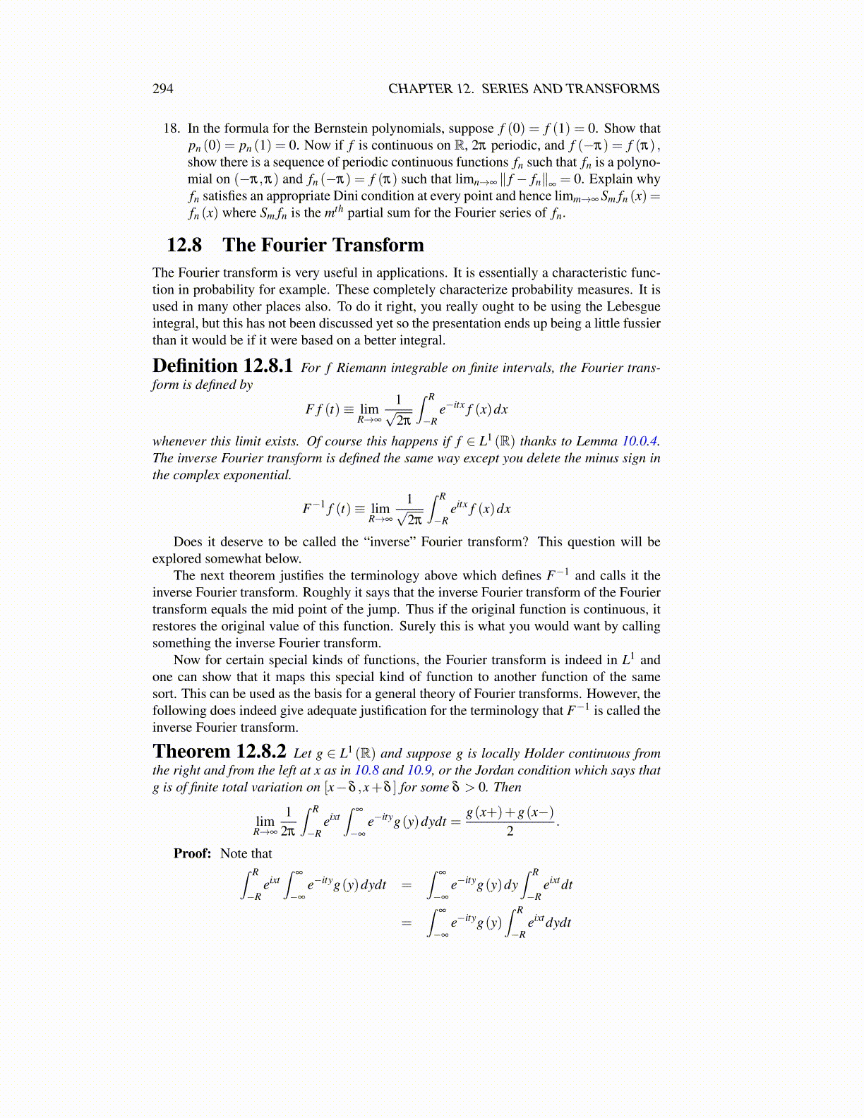 Also, from Theorem 10.2.5 or Corollary 10.2.8, the limit as R→ ∞ is f (x−)+ f (x+)2 . This