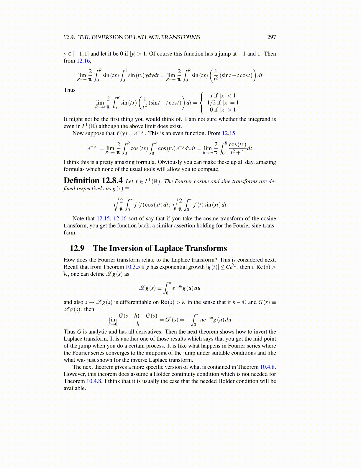 requires fussing over whether you end up with something Riemann integrable giventhat f is when you do certain things. I have presented it for piecewise continuousfunctions because that is where the interesting application resides and it is obviousthat everything stays piecewise continuous. If you want to do these things right, youneed to be using the Lebesgue integral anyway.