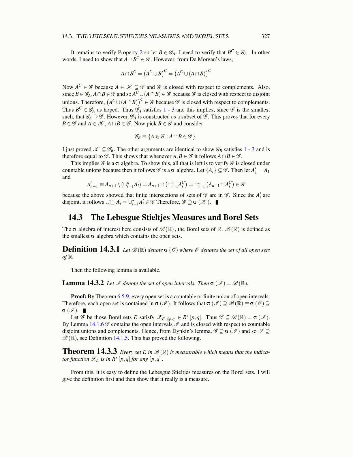 14.3. THE LEBESGUE STIELTJES MEASURES AND BOREL SETS 327