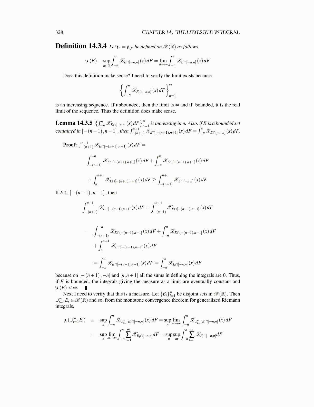 328 CHAPTER 14. THE LEBESGUE INTEGRAL
