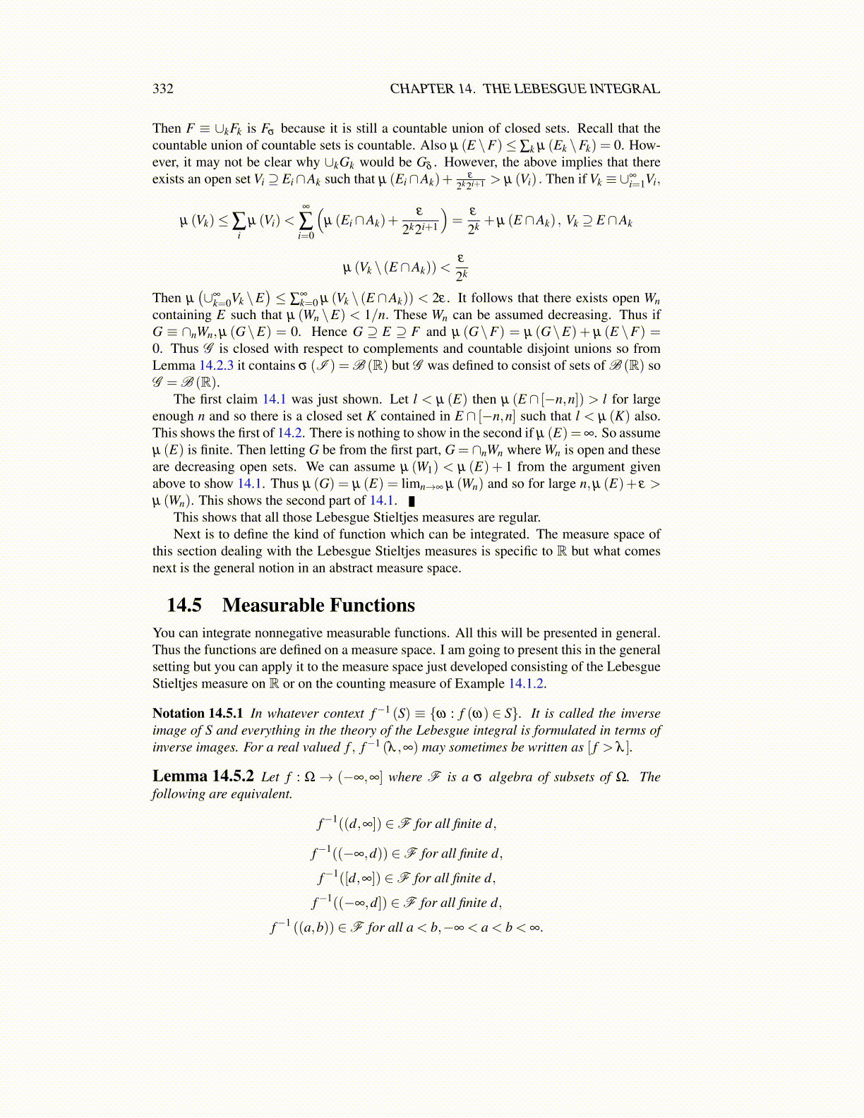 332 CHAPTER 14. THE LEBESGUE INTEGRAL