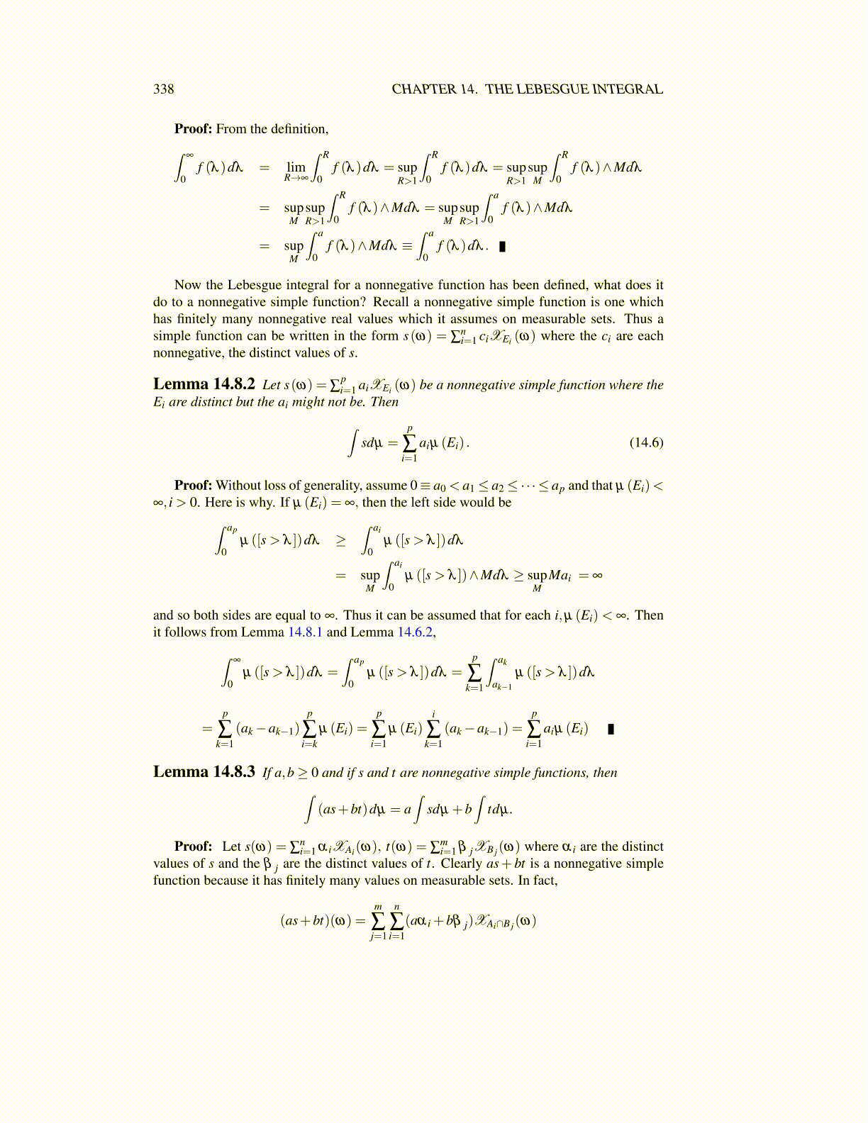 338 CHAPTER 14. THE LEBESGUE INTEGRAL
