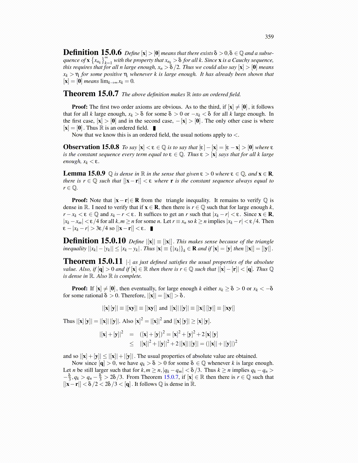 Most numbers are transcendental. This follows from Problem 14 on Page 51 and Prob-lem 16 on Page 51. However, it is very difficult to show that a particular number is tran-scendental. Lindermann and Weierstrass made some progress on this in 1882 and 1884. Inparticular, Lindermann showed that π is transcendental. This solved the ancient problemabout whether one could square the circle. If you start with the unit circle, its area is π andthe question was whether you could construct with compass and unmarked straight edgeonly, a square of area π .