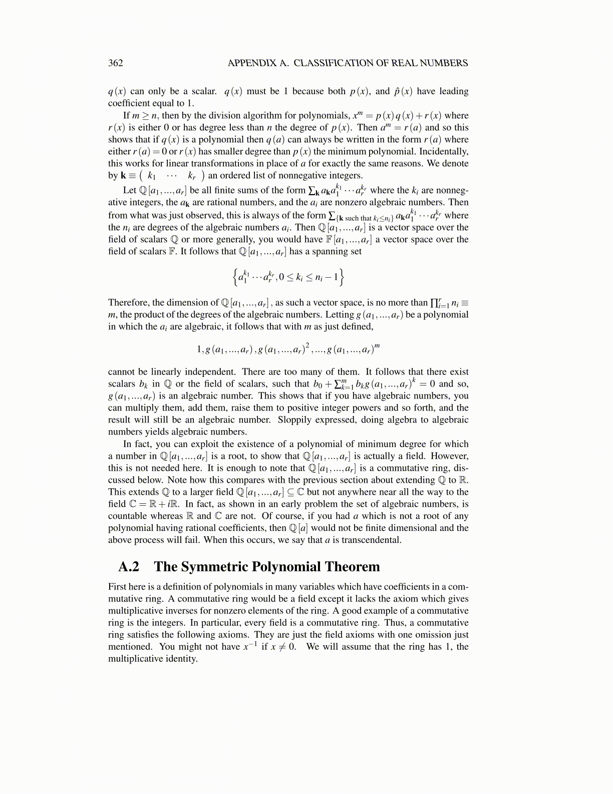 362 APPENDIX A. CLASSIFICATION OF REAL NUMBERS
