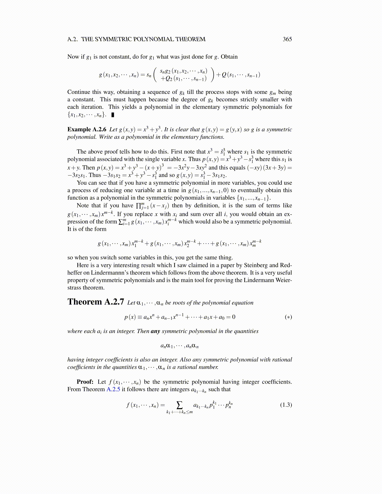 Proof: The coefficients of the polynomial x→ g(x,x1, ...,xn) are symmetric functionsof {x1, ...,xn} . Differentiating with respect to x multiple times just gives another polyno-mial in x having coefficients which are symmetric functions. Thus the first part is proved.For the second part, the sum is of the form