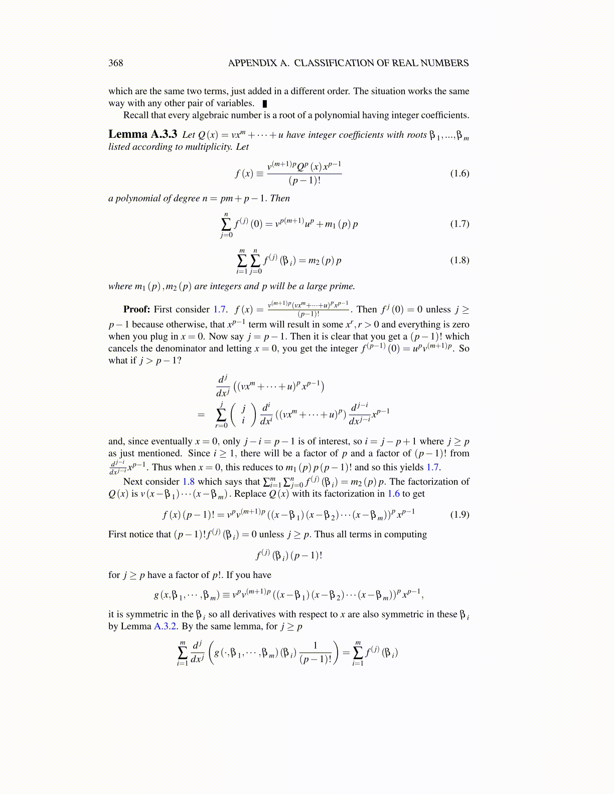 368 APPENDIX A. CLASSIFICATION OF REAL NUMBERS