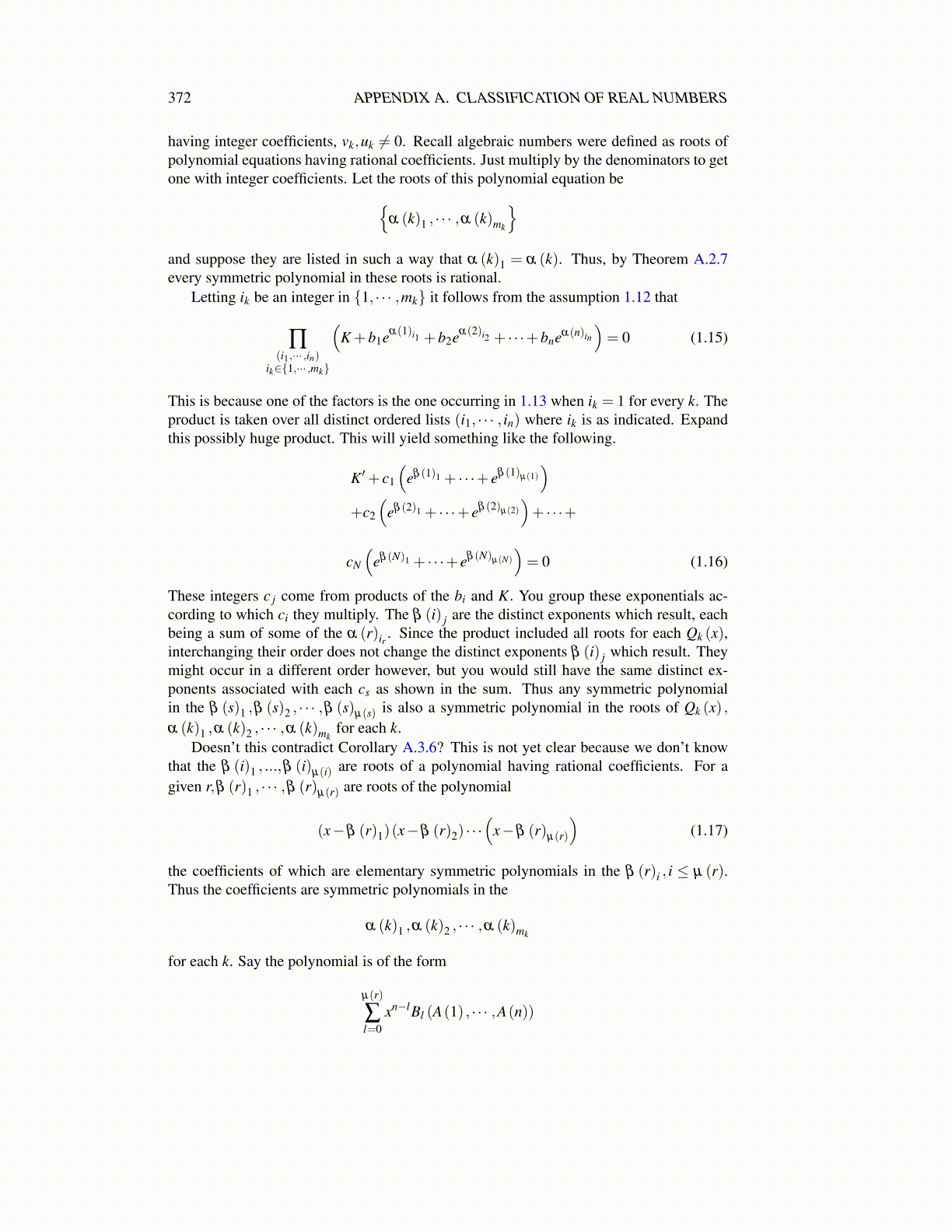 372 APPENDIX A. CLASSIFICATION OF REAL NUMBERS