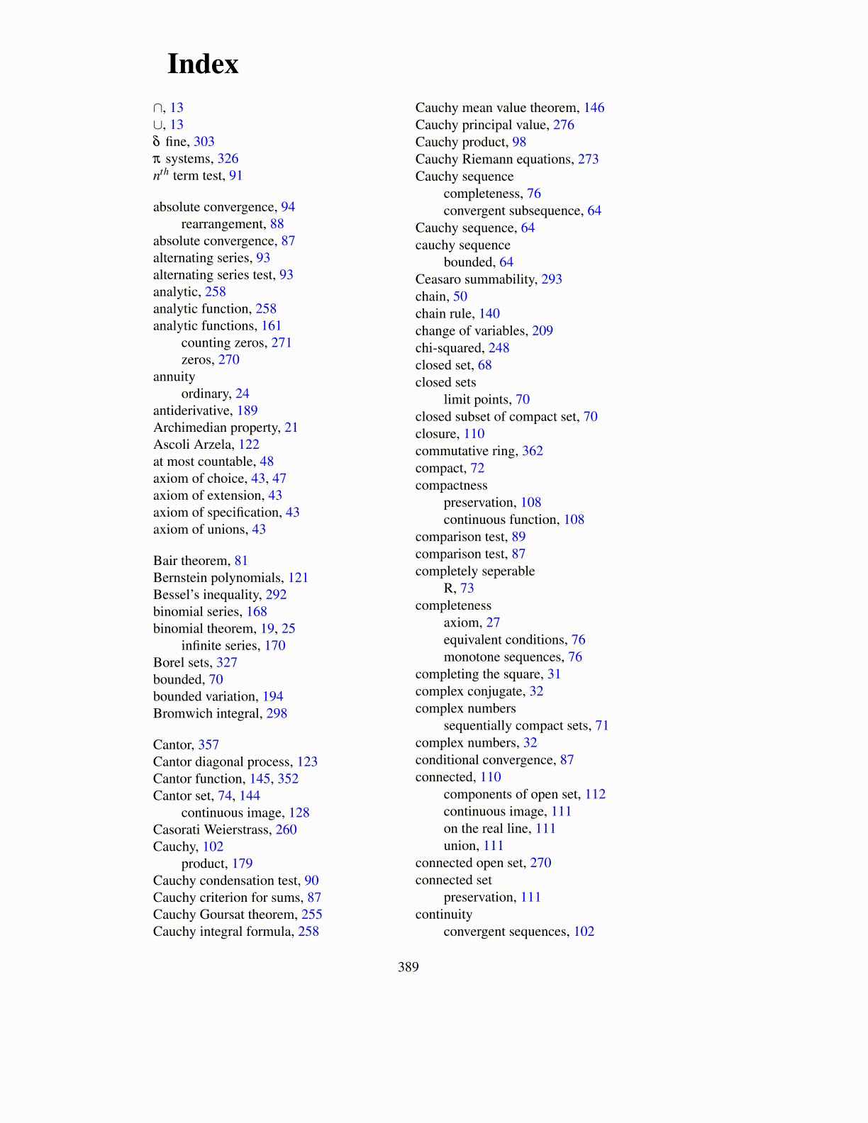 Heine Borel, 67Heine Borel theorem, 72Henstock, 303Henstock’s lemma, 308Holder condition, 127Holder continuous, 376Holder functions, 127Holder’s inequality, 221, 375holomorphic, 258