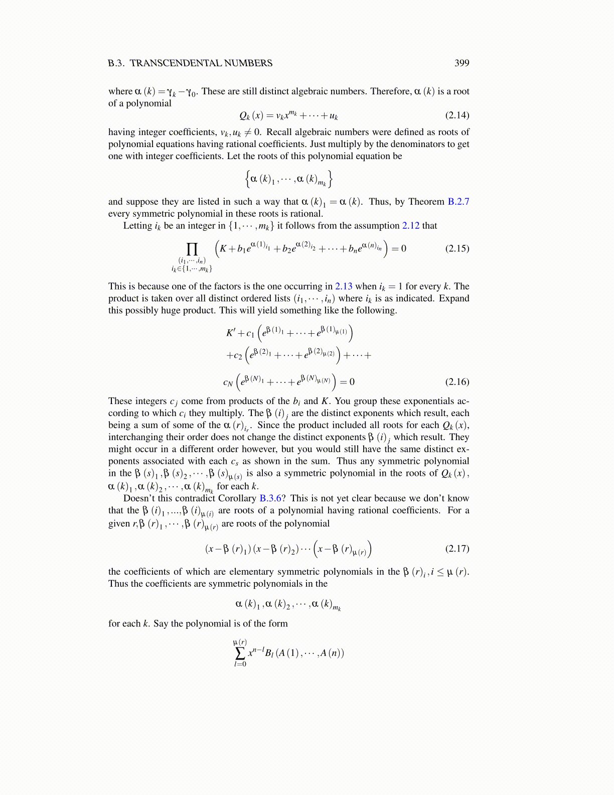 Lemma B.3.3 Let Q(x) = vxm + · · ·+ u have integer coefficients with roots β 1, ...,β mlisted according to multiplicity. Let
