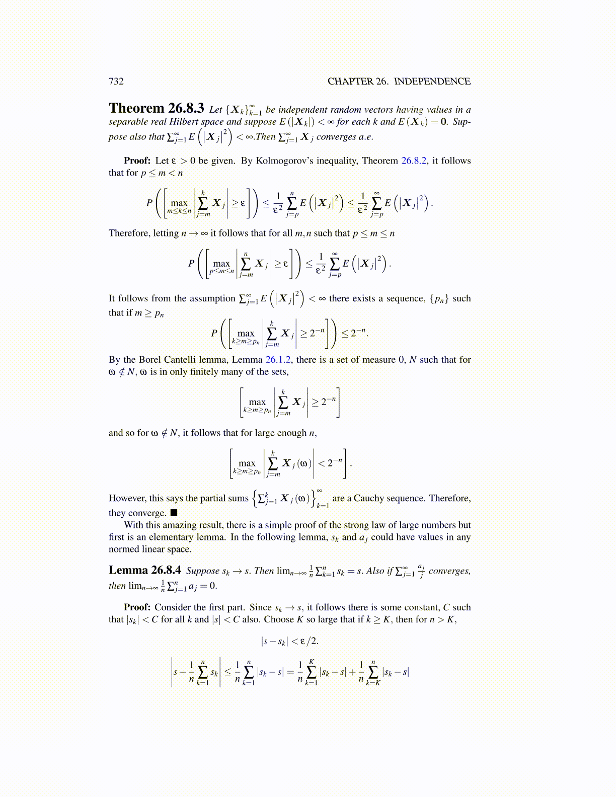 Theorem 26.8.3 Let {Xk}∞