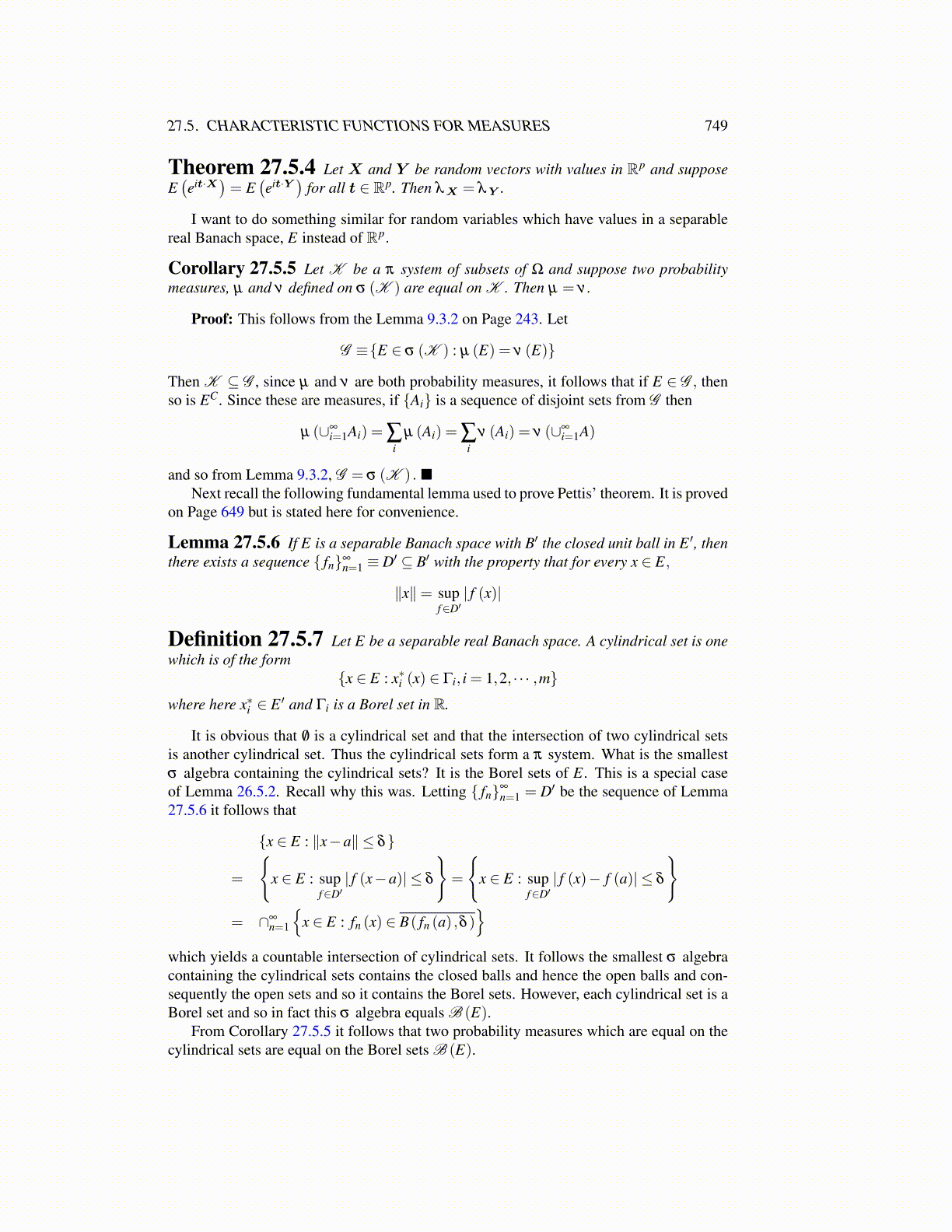 27.5. CHARACTERISTIC FUNCTIONS FOR MEASURES 749