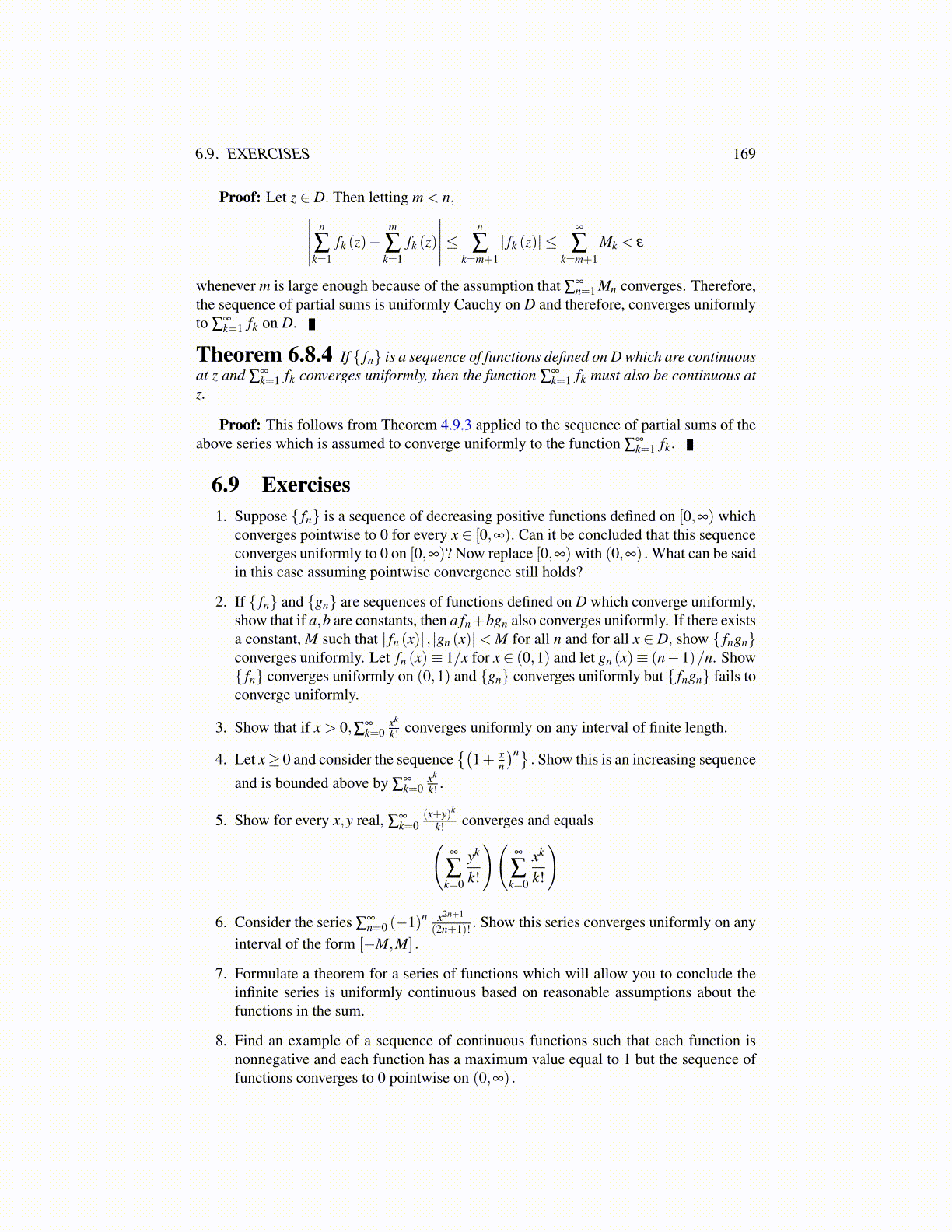 Theorem 6.8.4 If { fn} is a sequence of functions defined on D which are continuousat z and ∑