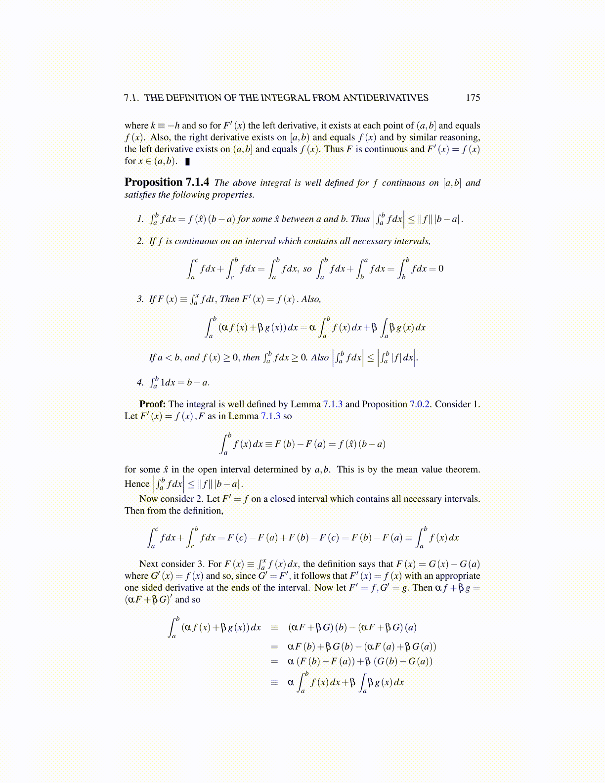 Proof: The integral is well defined by Lemma 7.1.3 and Proposition 7.0.2. Consider 1.Let F ′ (x) = f (x) ,F as in Lemma 7.1.3 so∫ b