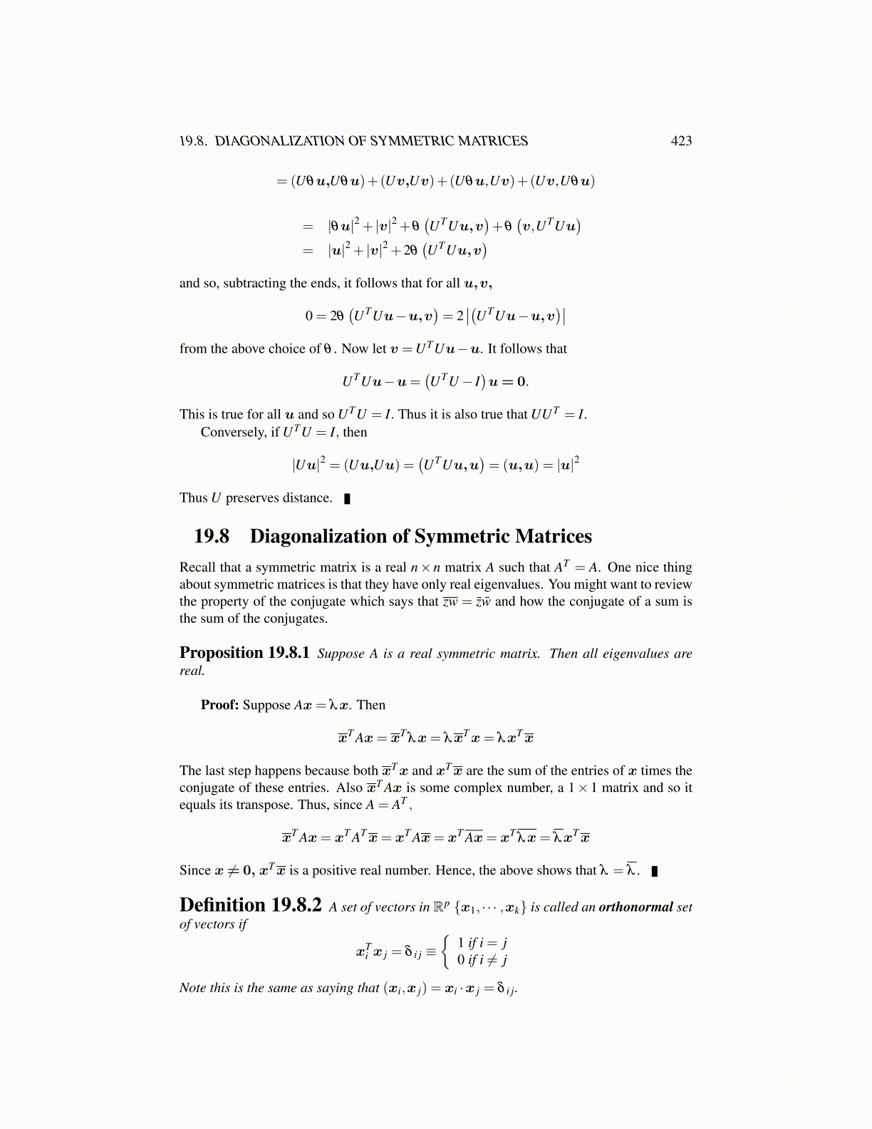 19.8. DIAGONALIZATION OF SYMMETRIC MATRICES 423