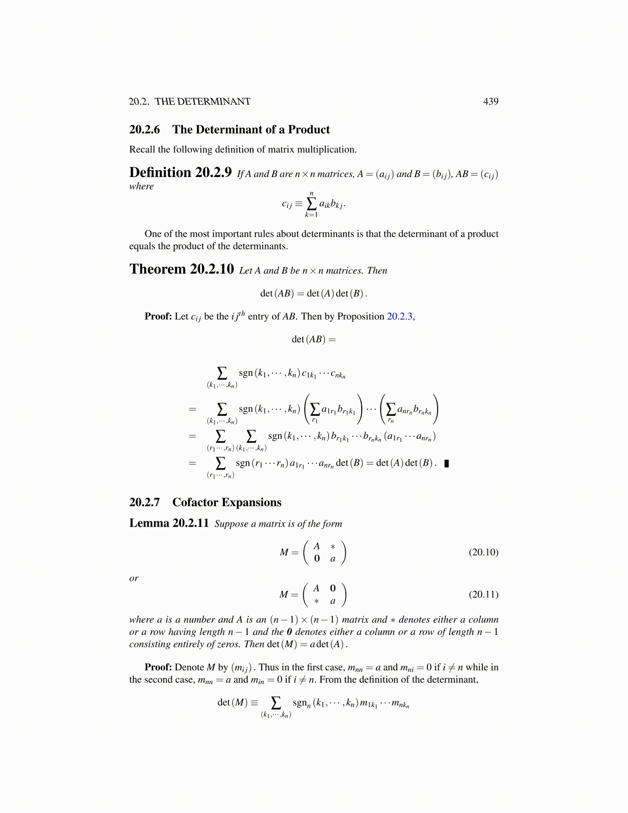 20.2.3, when two rows or two columns in a matrix M, are switched, this results in multi-plying the determinant of the old matrix by −1 to get the determinant of the new matrix.Therefore, by Lemma 20.2.11,