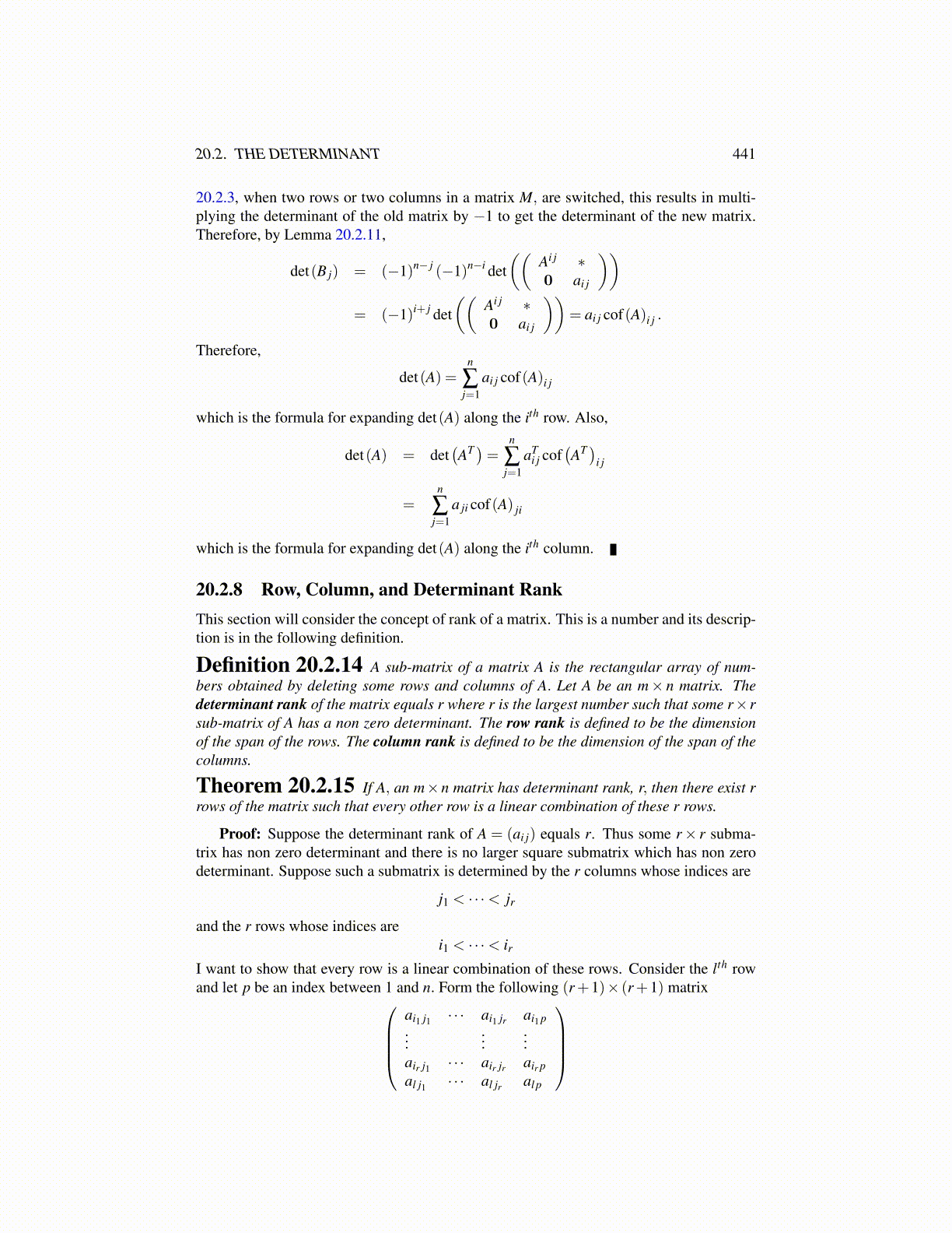 when k ̸= r. Replace the kth column with the rth column to obtain a matrix Bk whosedeterminant equals zero by Corollary 20.2.6. However, expanding this matrix along the kth
