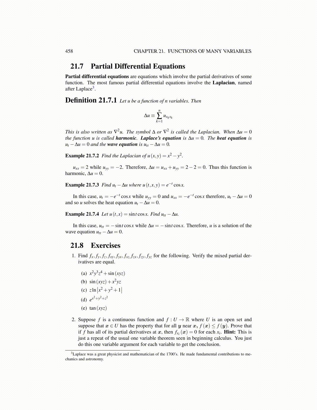 458 CHAPTER 21. FUNCTIONS OF MANY VARIABLES