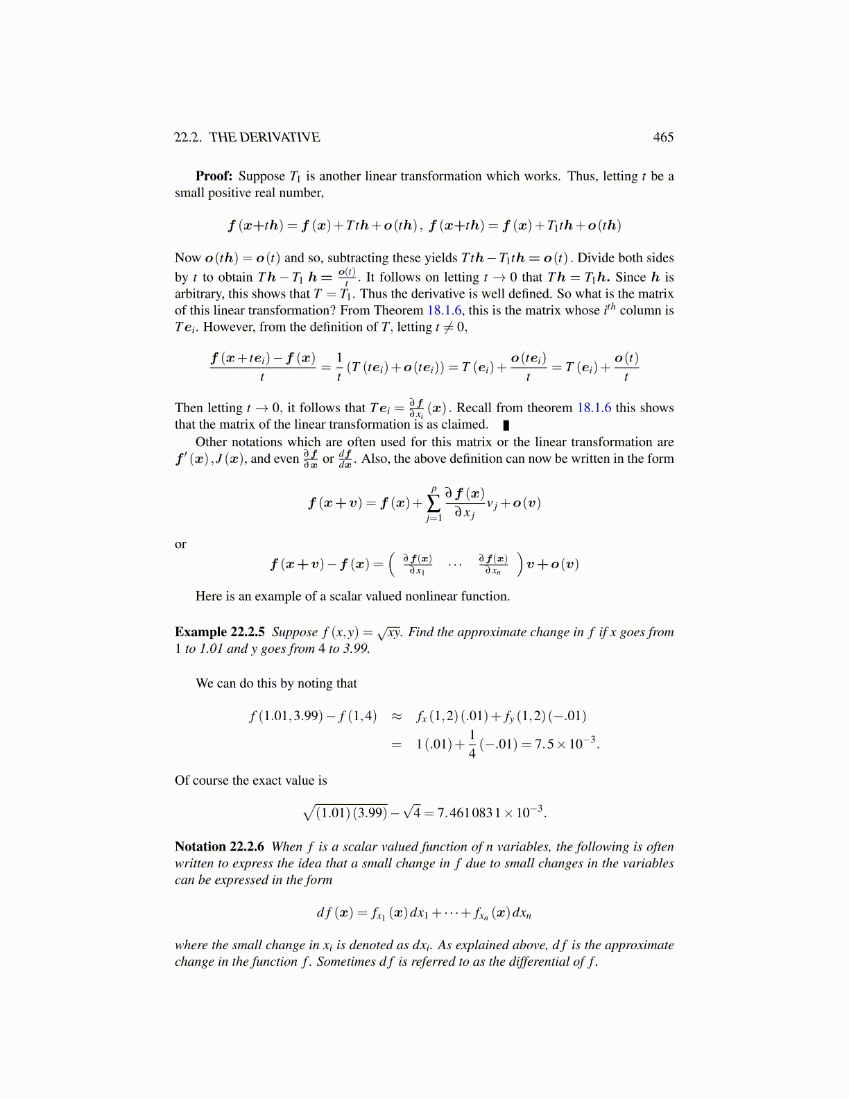 It follows easily the last term at the end is o(h,k, l) and so the derivative of this function isthe linear transformation coming from multiplication by the matrix