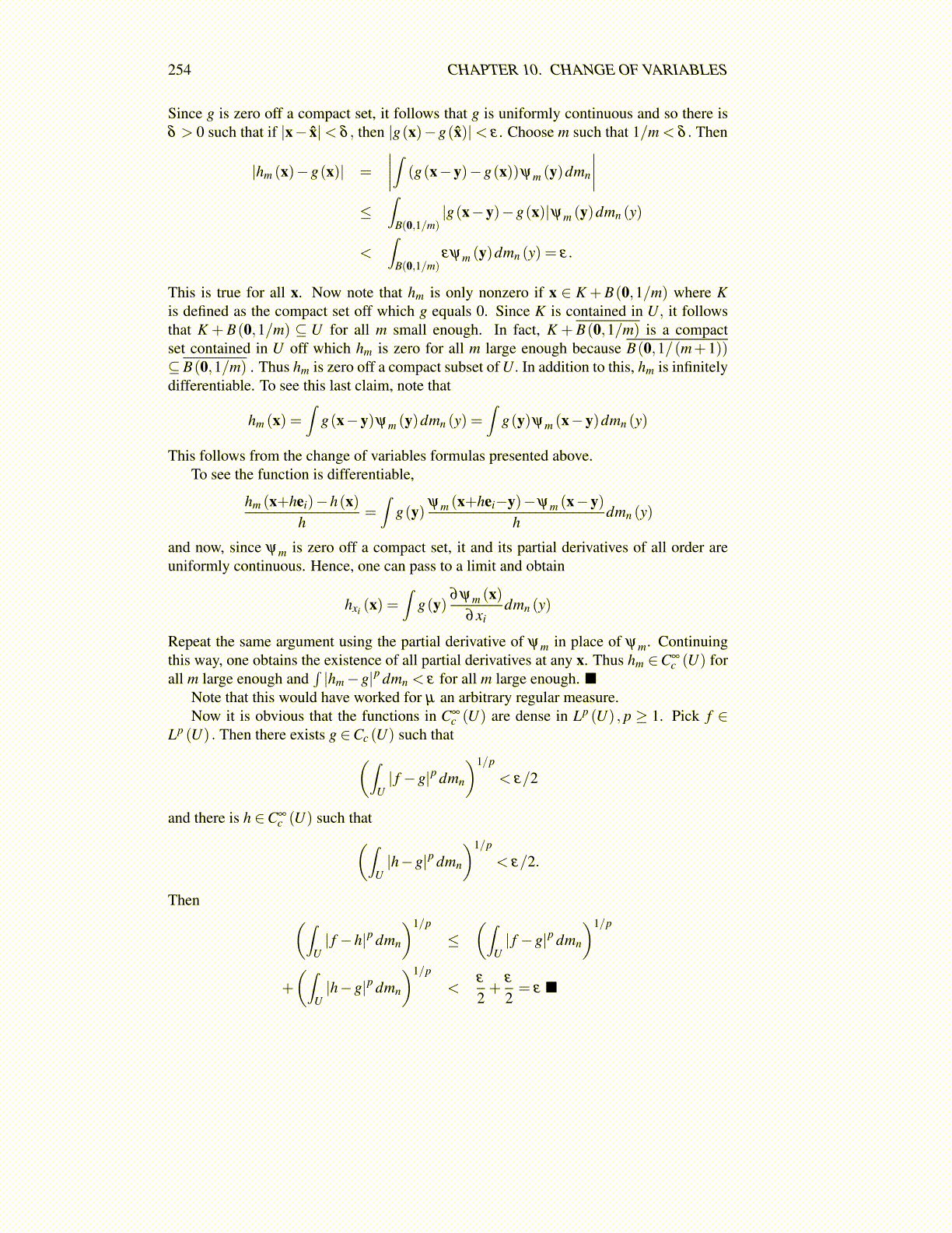 and now, since ψm is zero off a compact set, it and its partial derivatives of all order areuniformly continuous. Hence, one can pass to a limit and obtain