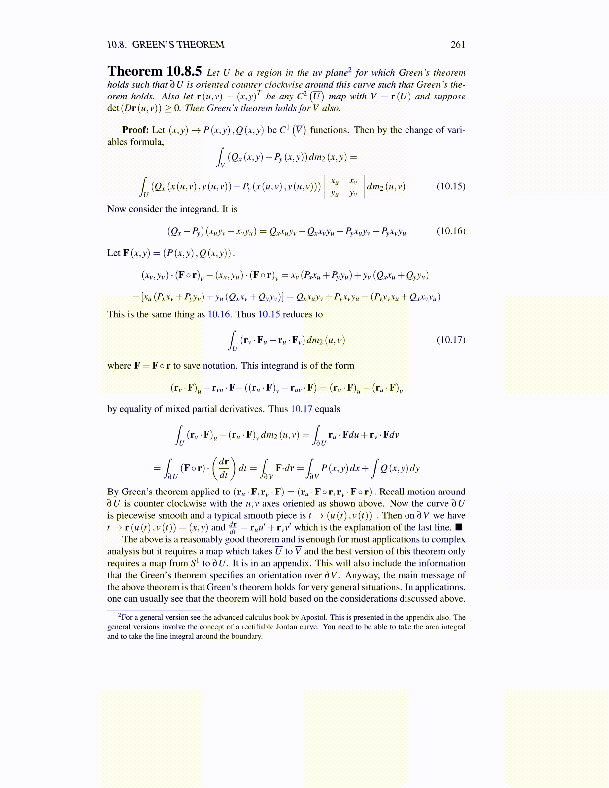 analysis but it requires a map which takes U to V and the best version of this theorem onlyrequires a map from S1 to ∂U . It is in an appendix. This will also include the informationthat the Green’s theorem specifies an orientation over ∂V . Anyway, the main message ofthe above theorem is that Green’s theorem holds for very general situations. In applications,one can usually see that the theorem will hold based on the considerations discussed above.