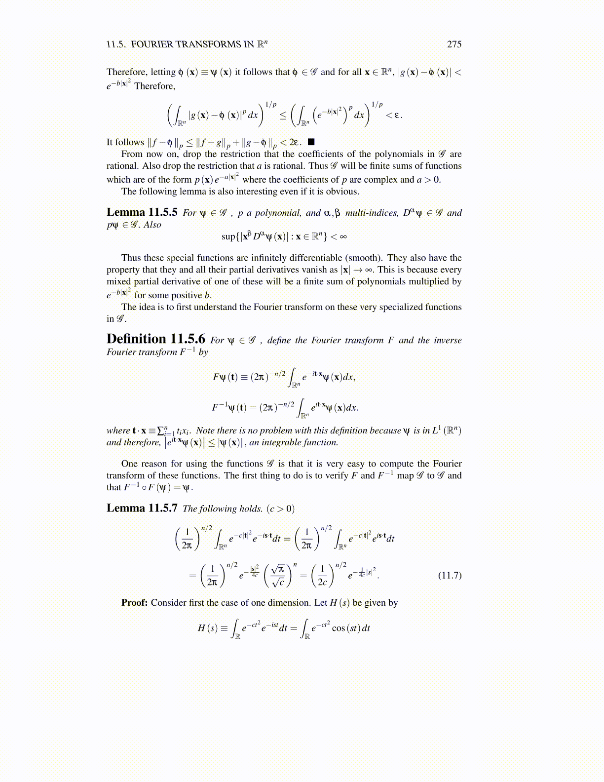 rational. Also drop the restriction that a is rational. Thus G will be finite sums of functionswhich are of the form p(x)e−a|x|2 where the coefficients of p are complex and a > 0.