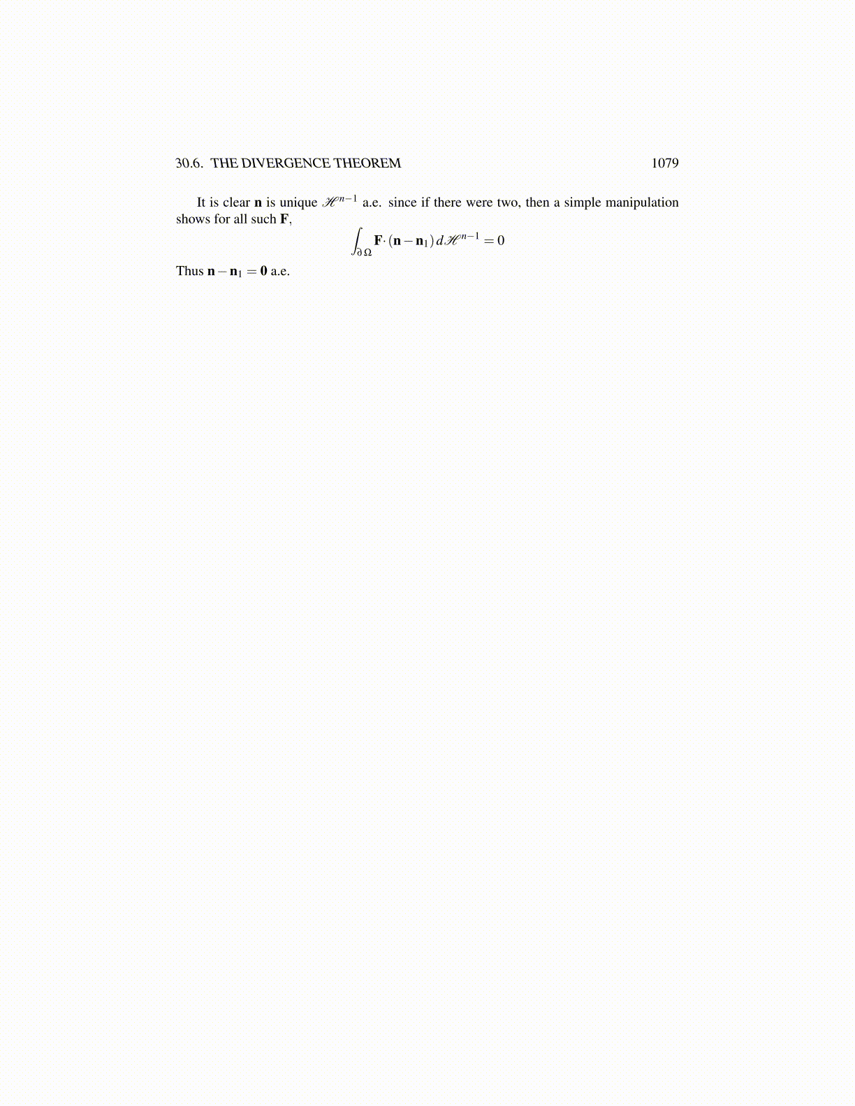 It is clear n is unique H n−1 a.e. since if there were two, then a simple manipulationshows for all such F, ∫