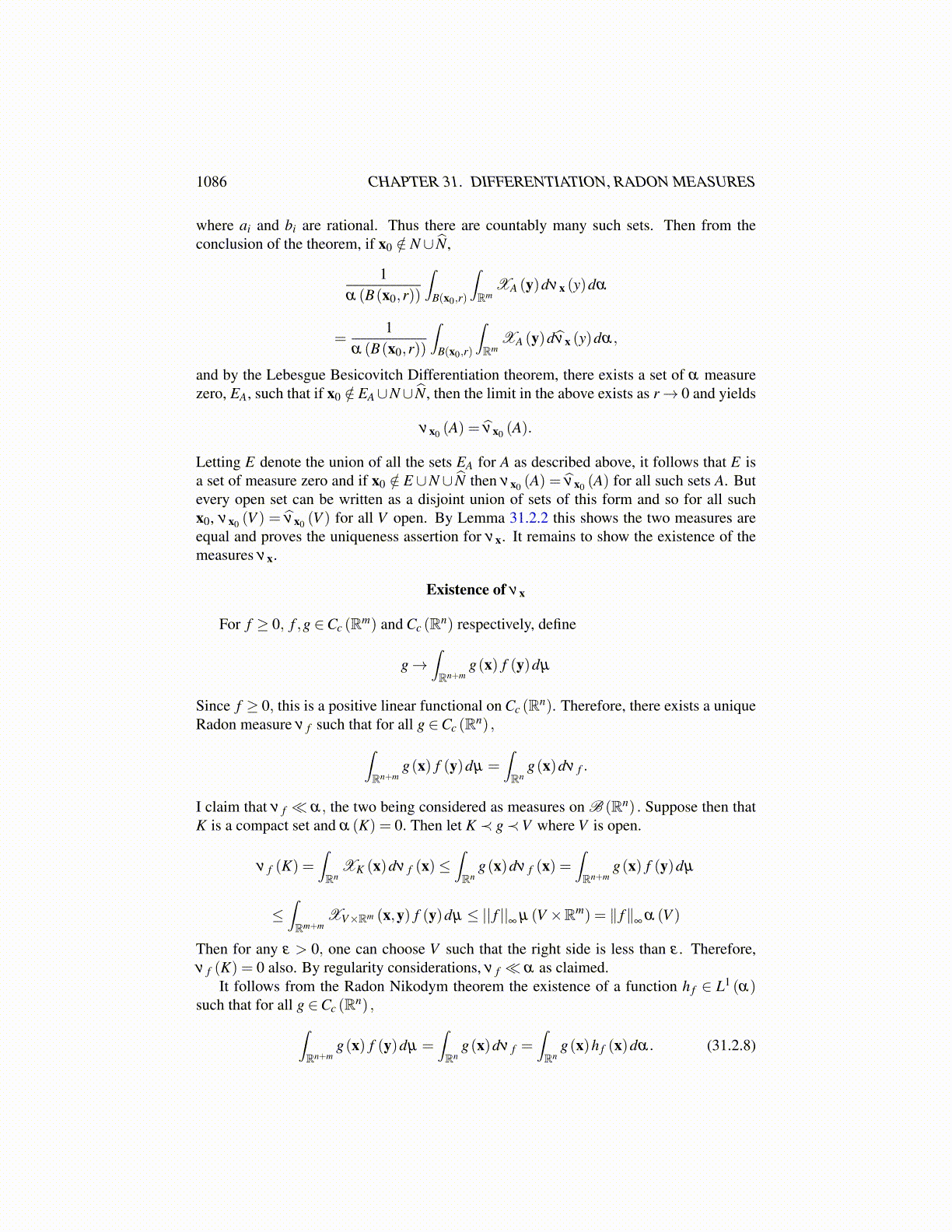 1086 CHAPTER 31. DIFFERENTIATION, RADON MEASURES