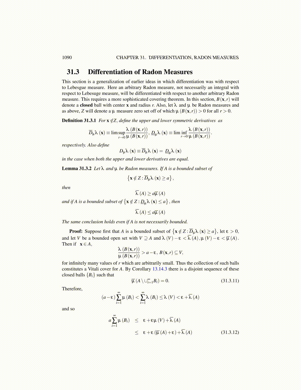 1090 CHAPTER 31. DIFFERENTIATION, RADON MEASURES