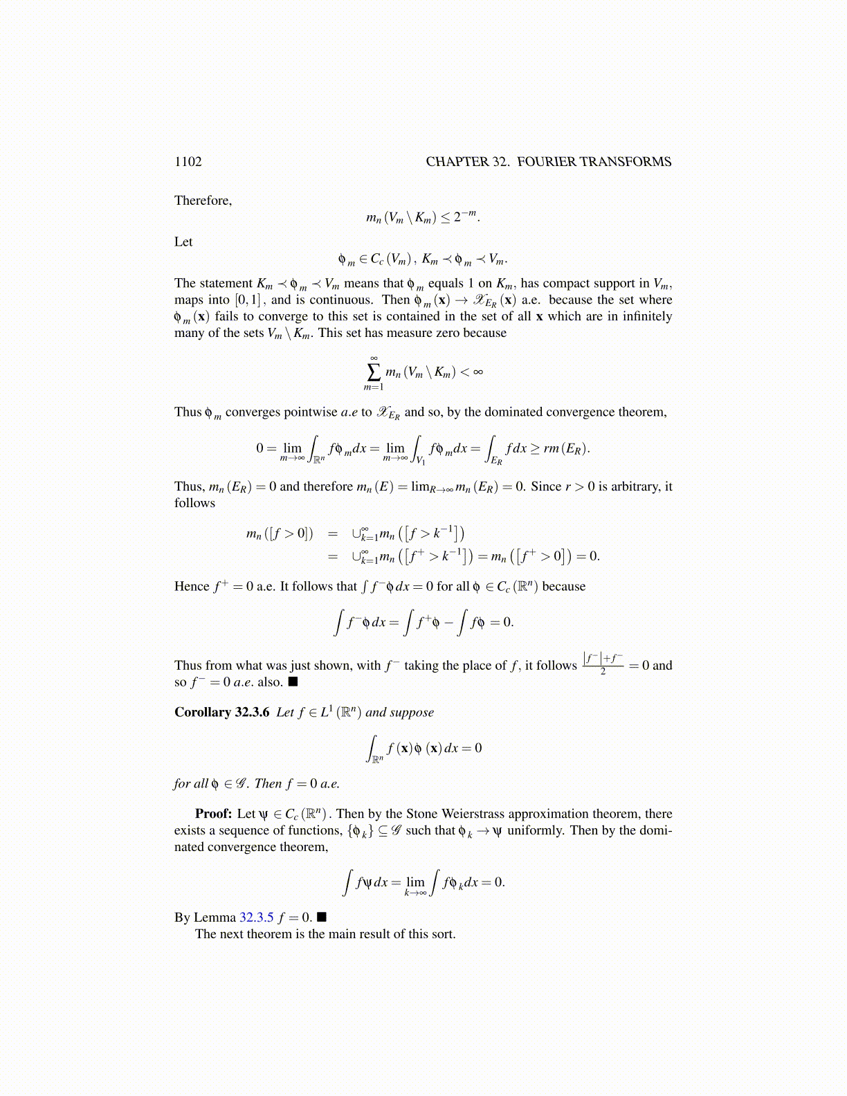 Corollary 32.3.6 Let f ∈ L1 (Rn) and suppose∫Rn