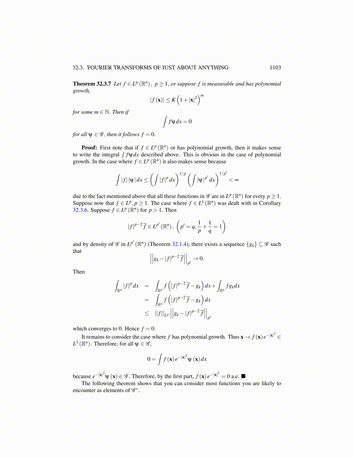 Theorem 32.3.7 Let f ∈ Lp (Rn) , p≥ 1, or suppose f is measurable and has polynomialgrowth,