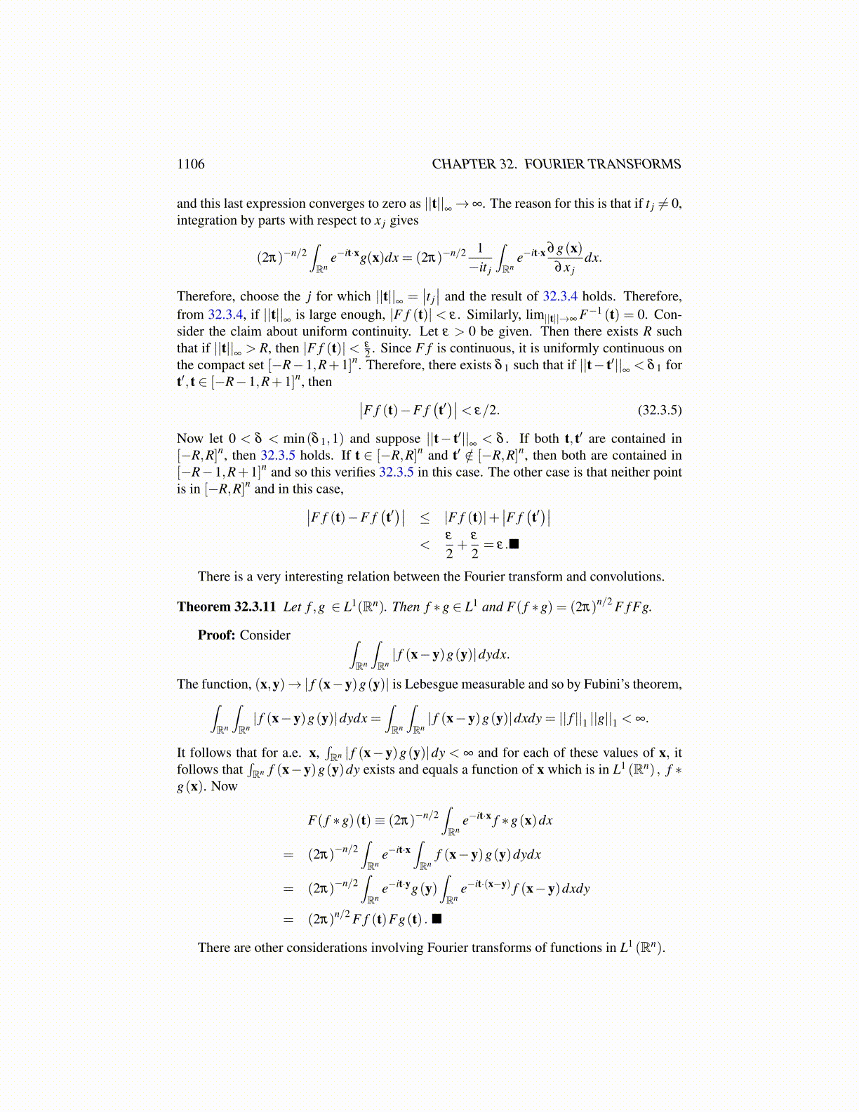Theorem 32.3.11 Let f ,g ∈ L1(Rn). Then f ∗g ∈ L1 and F( f ∗g) = (2π)n/2 F f Fg.
