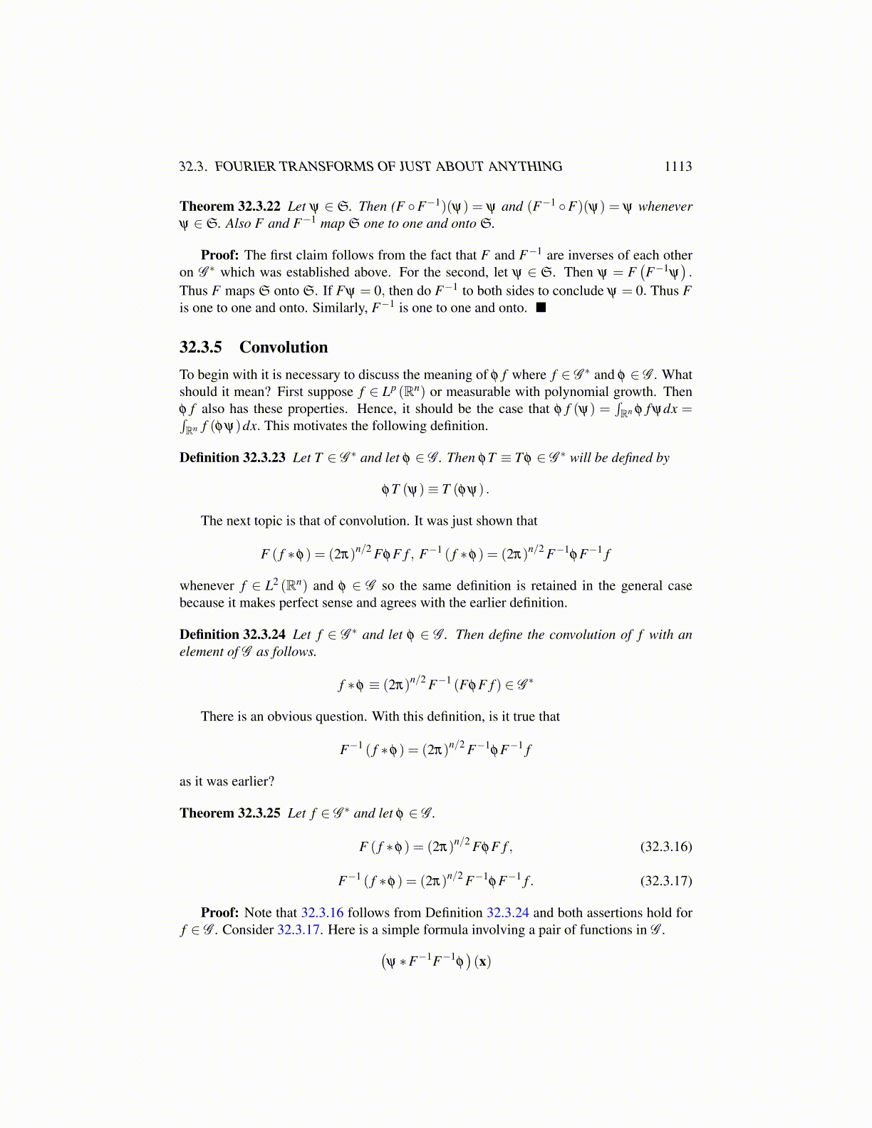 Theorem 32.3.22 Let ψ ∈S. Then (F ◦F−1)(ψ) = ψ and (F−1 ◦F)(ψ) = ψ wheneverψ ∈S. Also F and F−1 map S one to one and onto S.