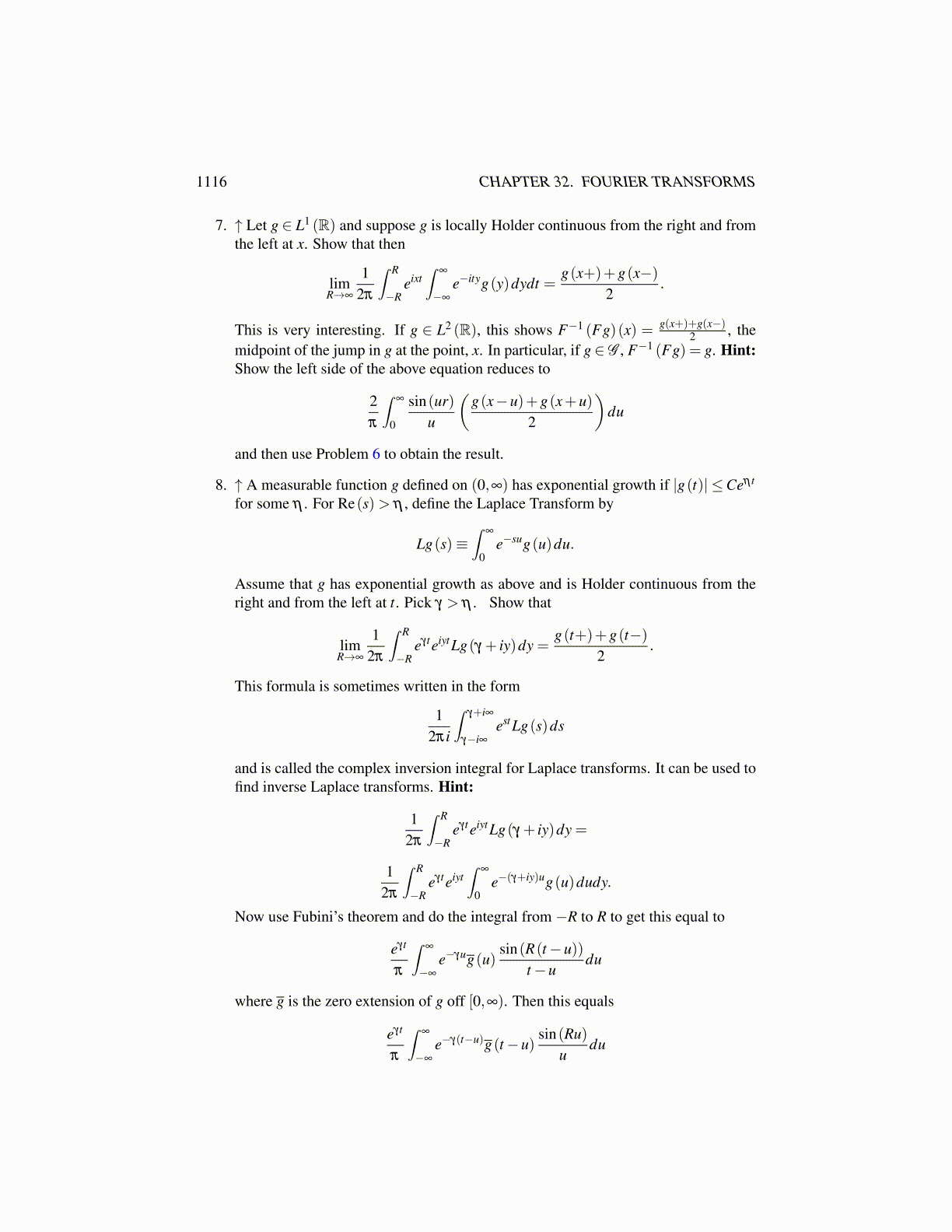 7. ↑ Let g ∈ L1 (R) and suppose g is locally Holder continuous from the right and fromthe left at x. Show that then