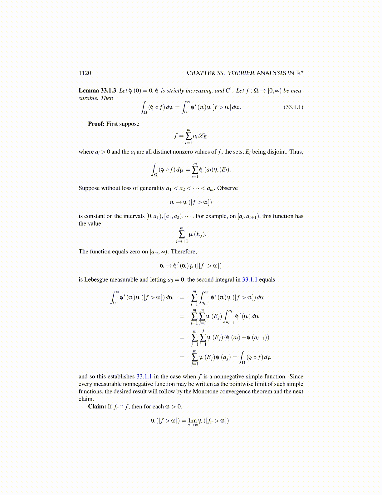 Lemma 33.1.3 Let φ (0) = 0, φ is strictly increasing, and C1. Let f : Ω→ [0,∞) be mea-surable. Then ∫