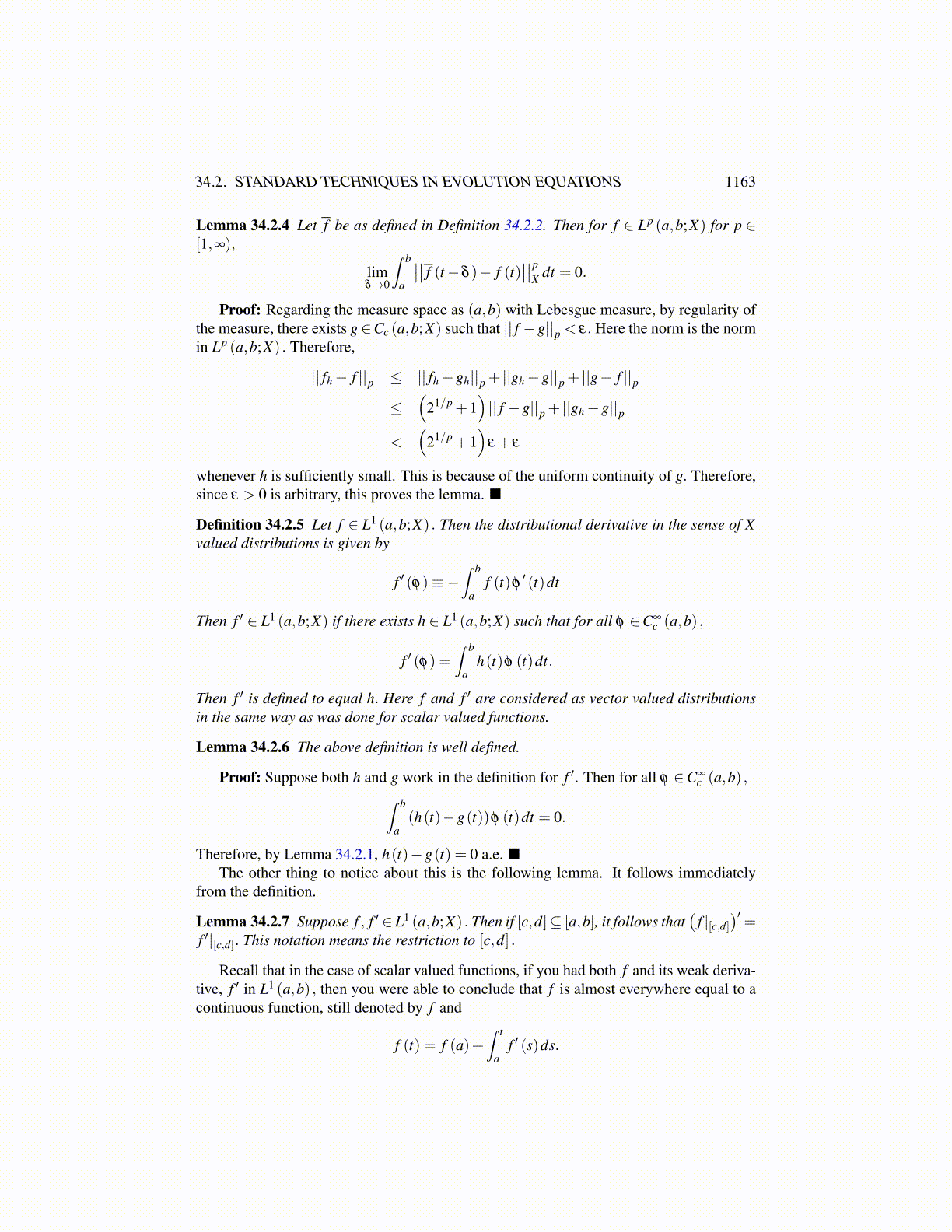 Lemma 34.2.4 Let f be as defined in Definition 34.2.2. Then for f ∈ Lp (a,b;X) for p ∈[1,∞),