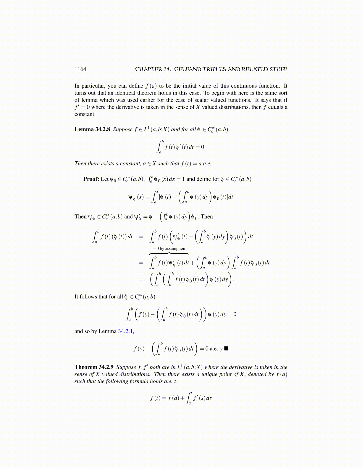 Lemma 34.2.8 Suppose f ∈ L1 (a,b;X) and for all φ ∈C∞c (a,b) ,