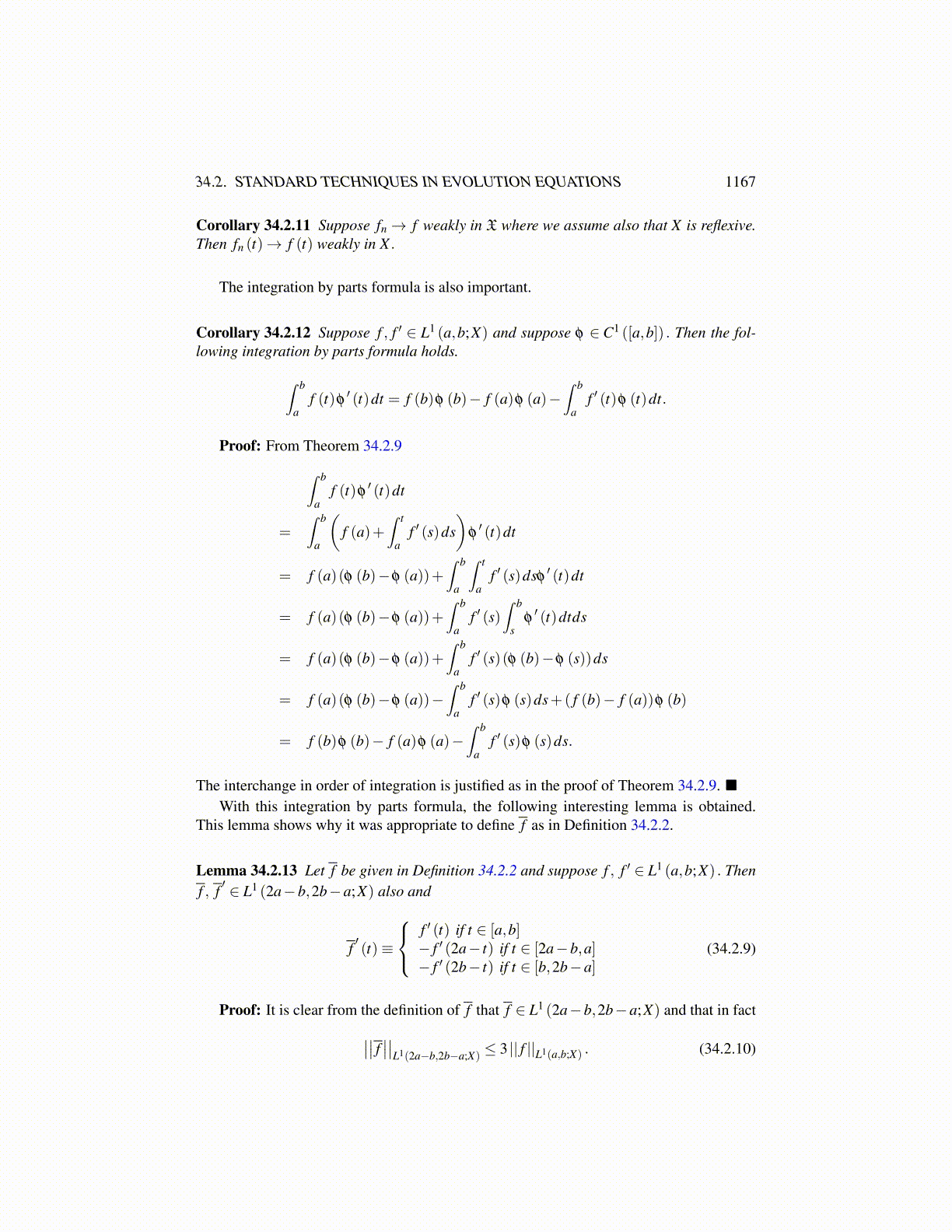 Lemma 34.2.13 Let f be given in Definition 34.2.2 and suppose f , f ′ ∈ L1 (a,b;X) . Thenf , f ′ ∈ L1 (2a−b,2b−a;X) also and