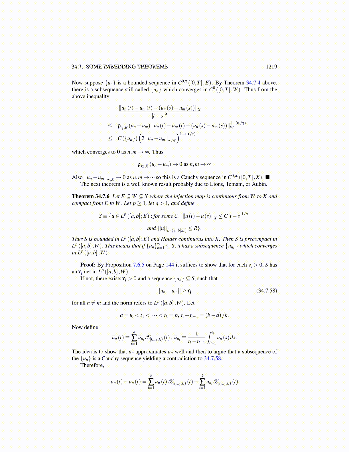 Also ∥un−um∥∞,X → 0 as n,m→ ∞ so this is a Cauchy sequence in C0,α ([0,T ] ,X).The next theorem is a well known result probably due to Lions, Temam, or Aubin.