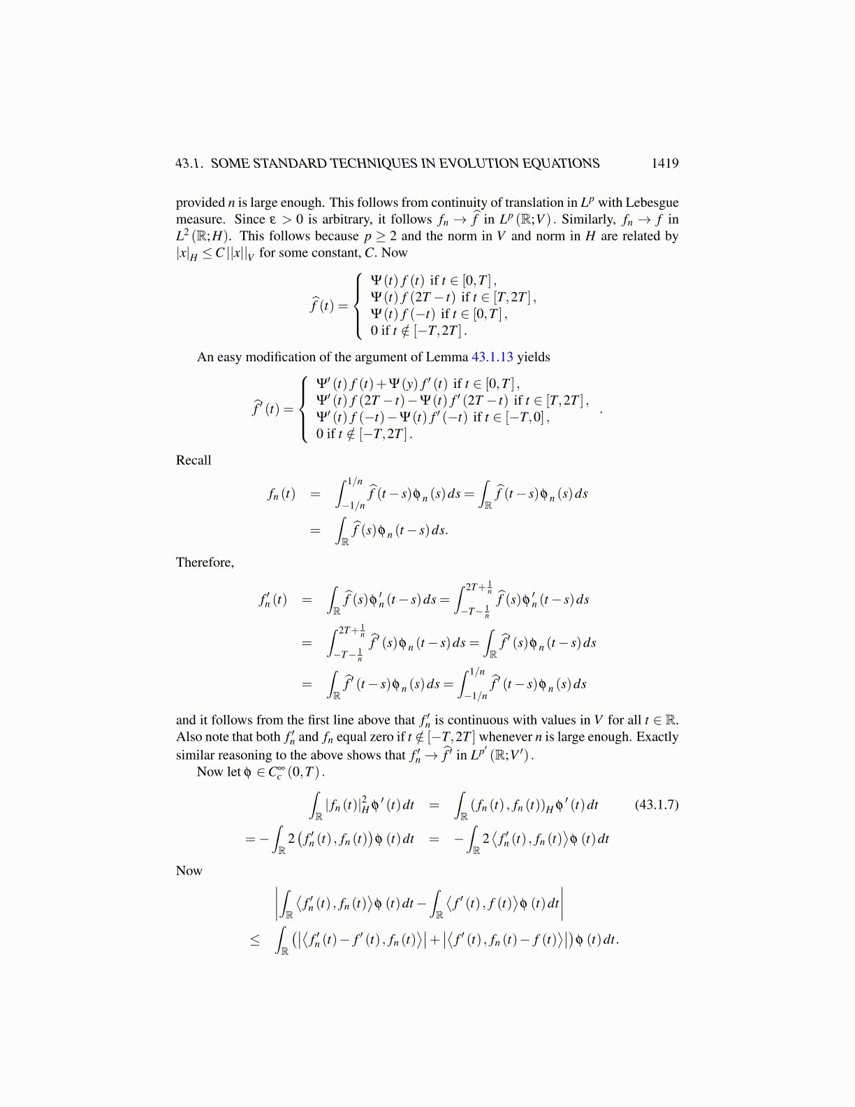 43.1. SOME STANDARD TECHNIQUES IN EVOLUTION EQUATIONS 1419
