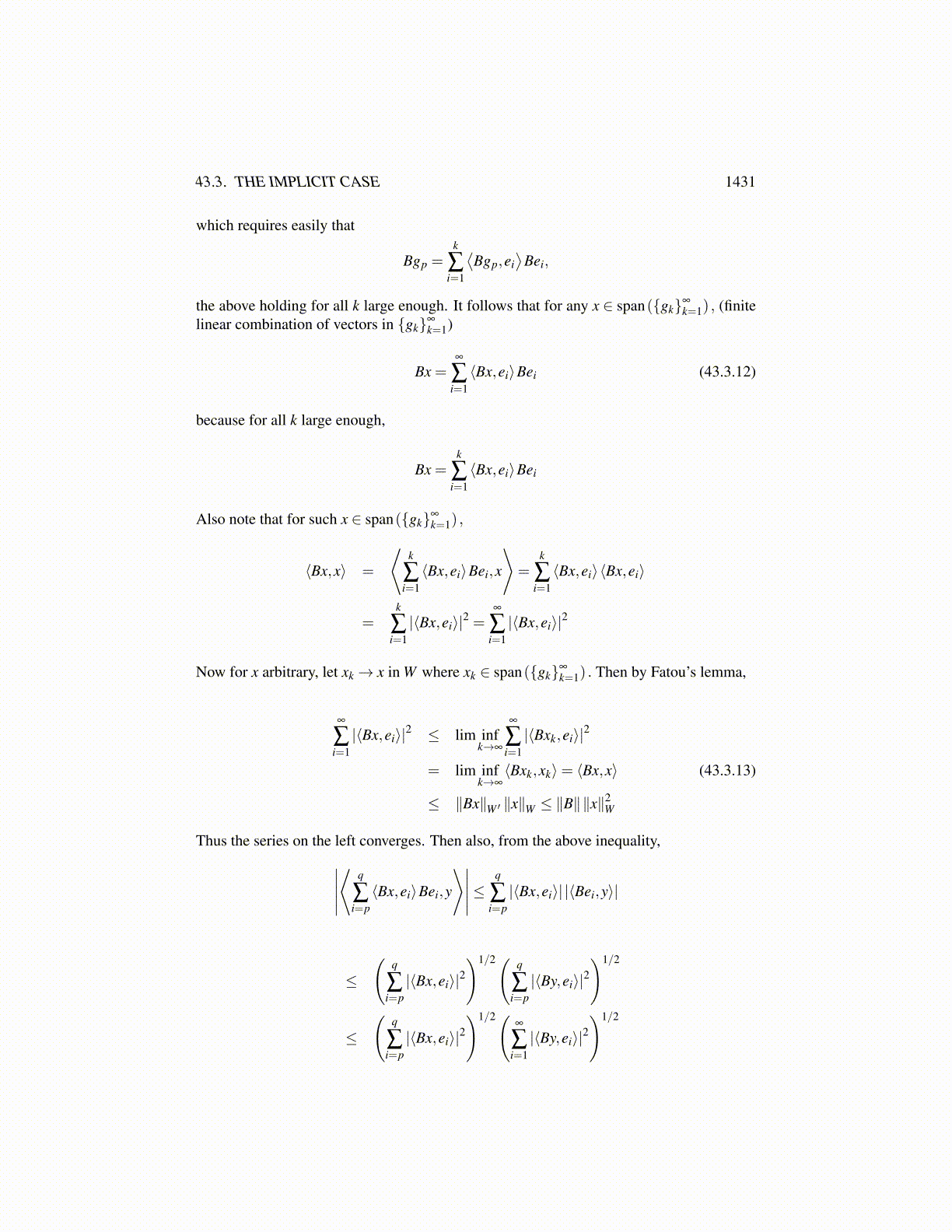 i=1 is actually a basis for BW .Proof: Let x ∈W . Let xr ∈ span(g1, · · · ,gr) ,r > nk such that limr→∞ xr = x in W . Then