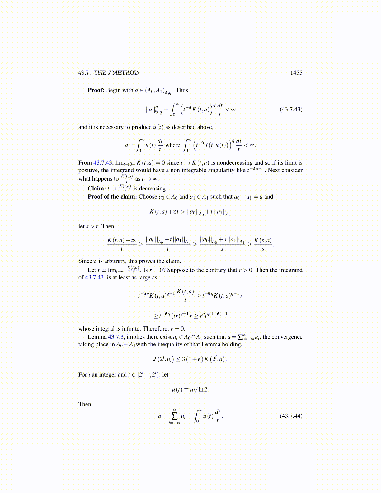Lemma 43.7.2 Suppose a ∈ (A0,A1)θ ,q,J and a =∫