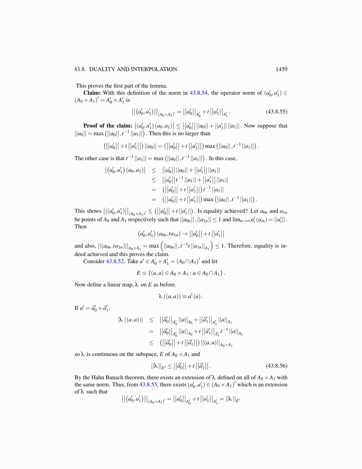 43.8 Duality And InterpolationIn this section it will be assumed that A0∩A1 is dense in Ai for i = 0,1. This is done so thatA′i ⊆ (A0∩A1)