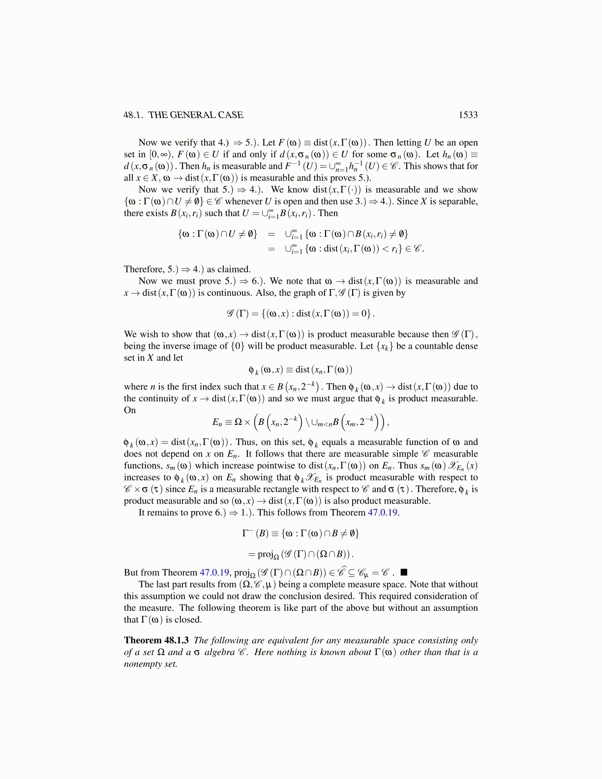 Let X be a separable complete metric space and let (Ω,C ,µ) be a set, a σ algebra ofsubsets of Ω, and a measure µ such that this is a complete σ finite measure space. Alsolet Γ : Ω→PF (X) , the closed subsets of X .