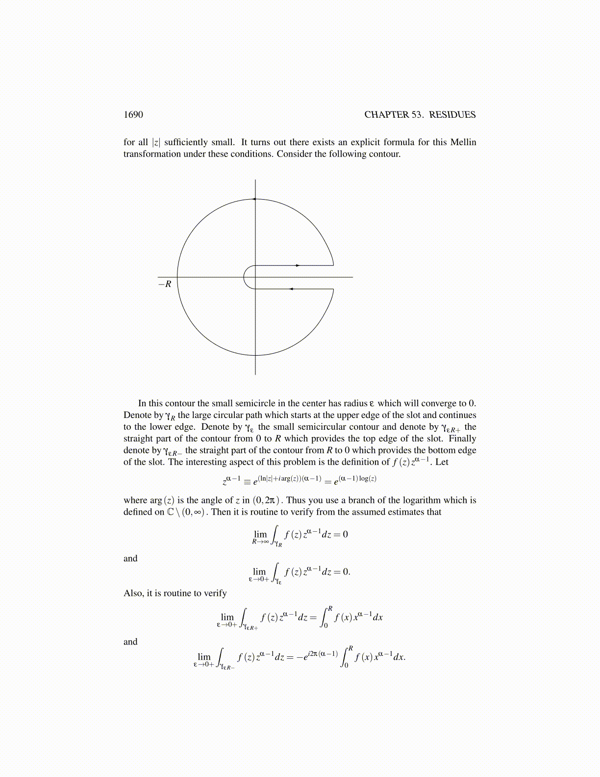 log since the usual version of the log is not defined on the negative real axis. This doesnot need to be of concern however. Simply use another branch of the logarithm. Leave outthe ray from 0 along the negative y axis and use Theorem 52.2.3 to define L(z) on this set.Thus L(z) = ln |z|+ iarg1 (z) where arg1 (z) will be the angle, θ , between −π