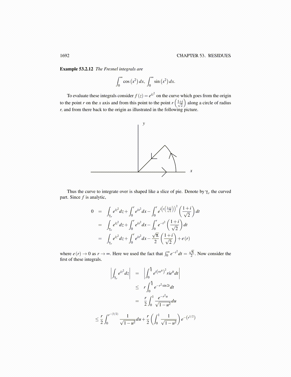 In this contour the small semicircle in the center has radius ε which will converge to 0.Denote by γR the large circular path which starts at the upper edge of the slot and continuesto the lower edge. Denote by γε the small semicircular contour and denote by γεR+ thestraight part of the contour from 0 to R which provides the top edge of the slot. Finallydenote by γεR− the straight part of the contour from R to 0 which provides the bottom edgeof the slot. The interesting aspect of this problem is the definition of f (z)zα−1. Let