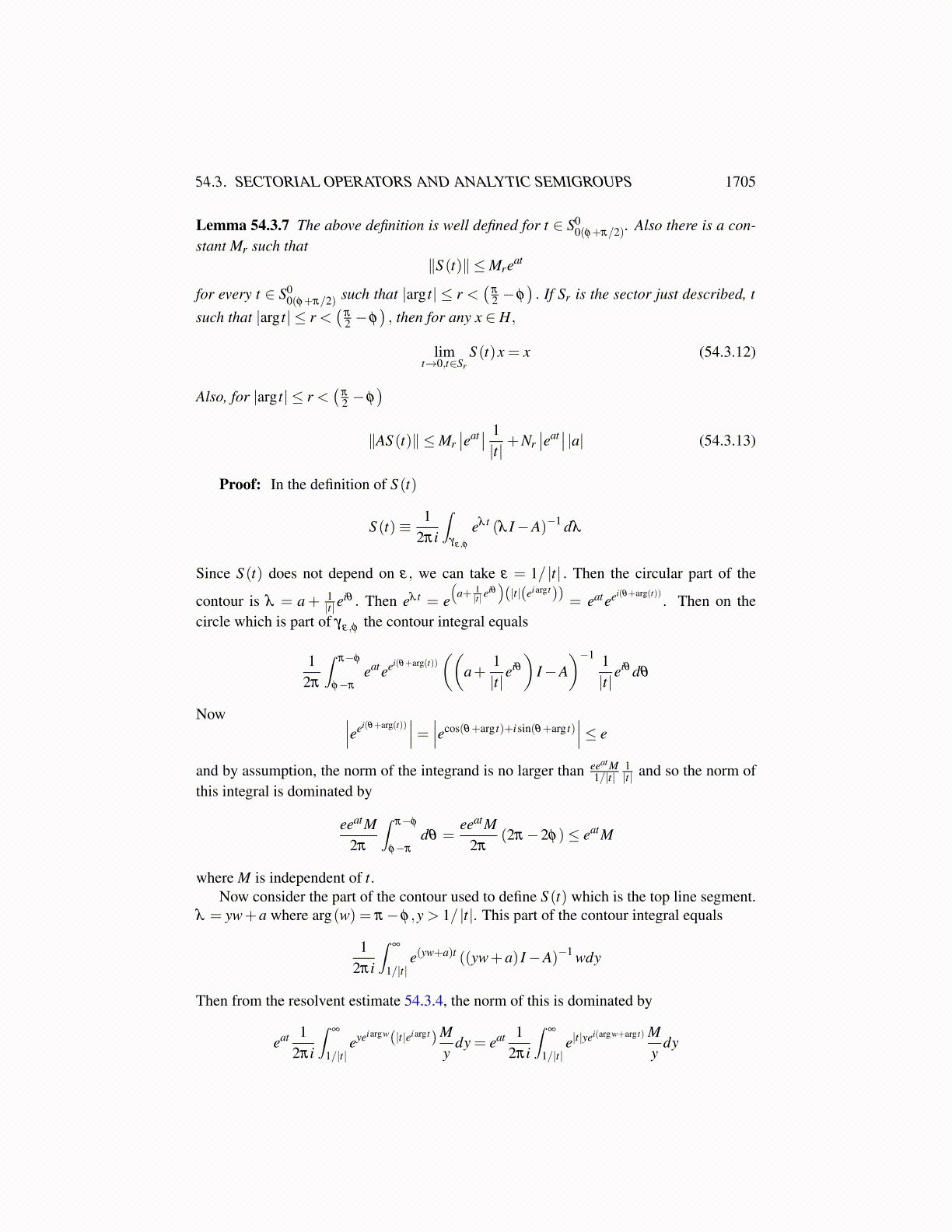 54.3. SECTORIAL OPERATORS AND ANALYTIC SEMIGROUPS 1705