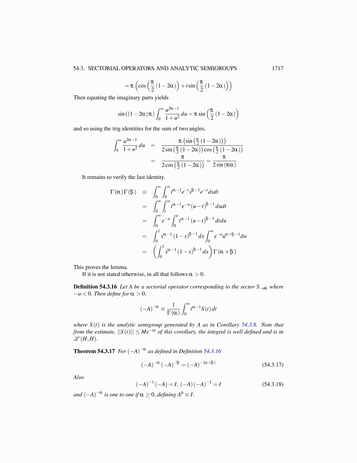 54.3. SECTORIAL OPERATORS AND ANALYTIC SEMIGROUPS 1717