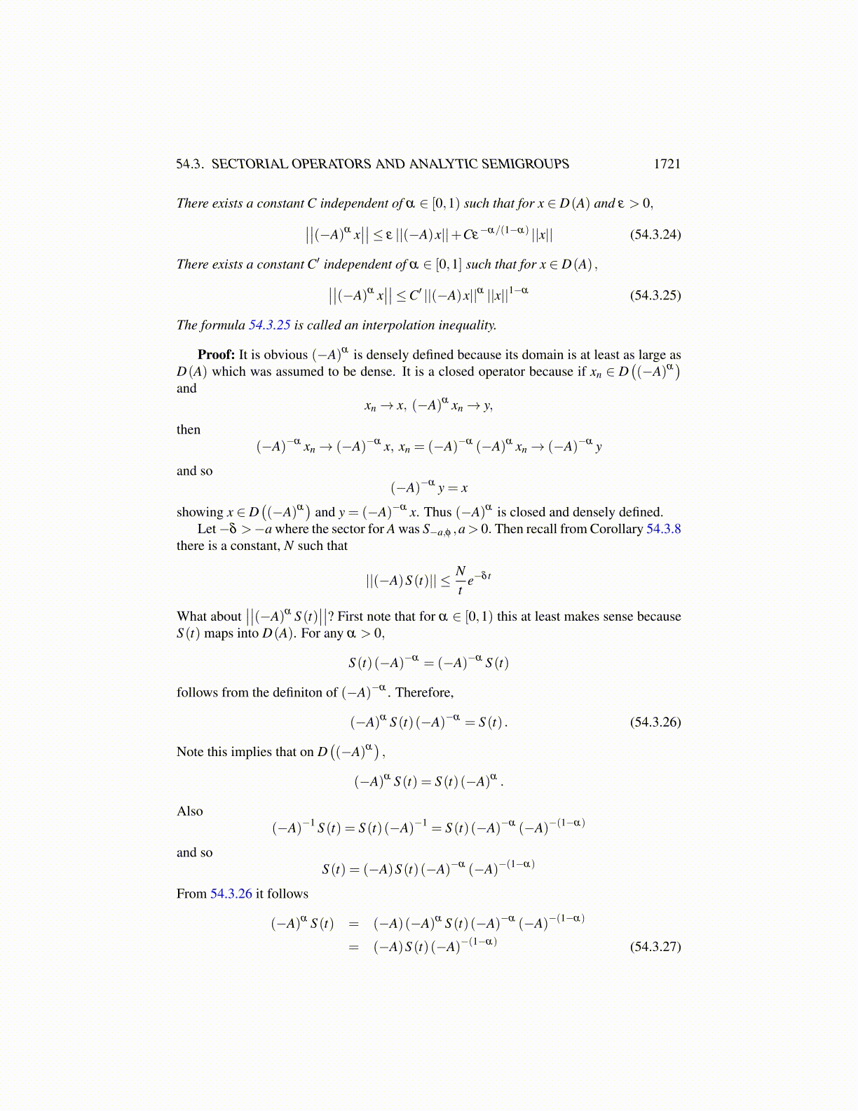 54.3. SECTORIAL OPERATORS AND ANALYTIC SEMIGROUPS 1721