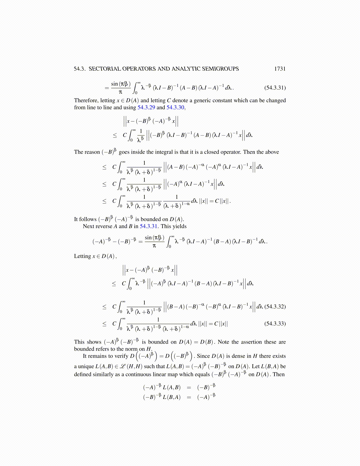 54.3. SECTORIAL OPERATORS AND ANALYTIC SEMIGROUPS 1731
